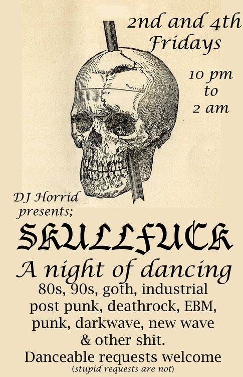 2nd Friday -SkullfucK w/DJ Horrid after -pop goth, 80s, ebm, industrial, 90s, requests welcome